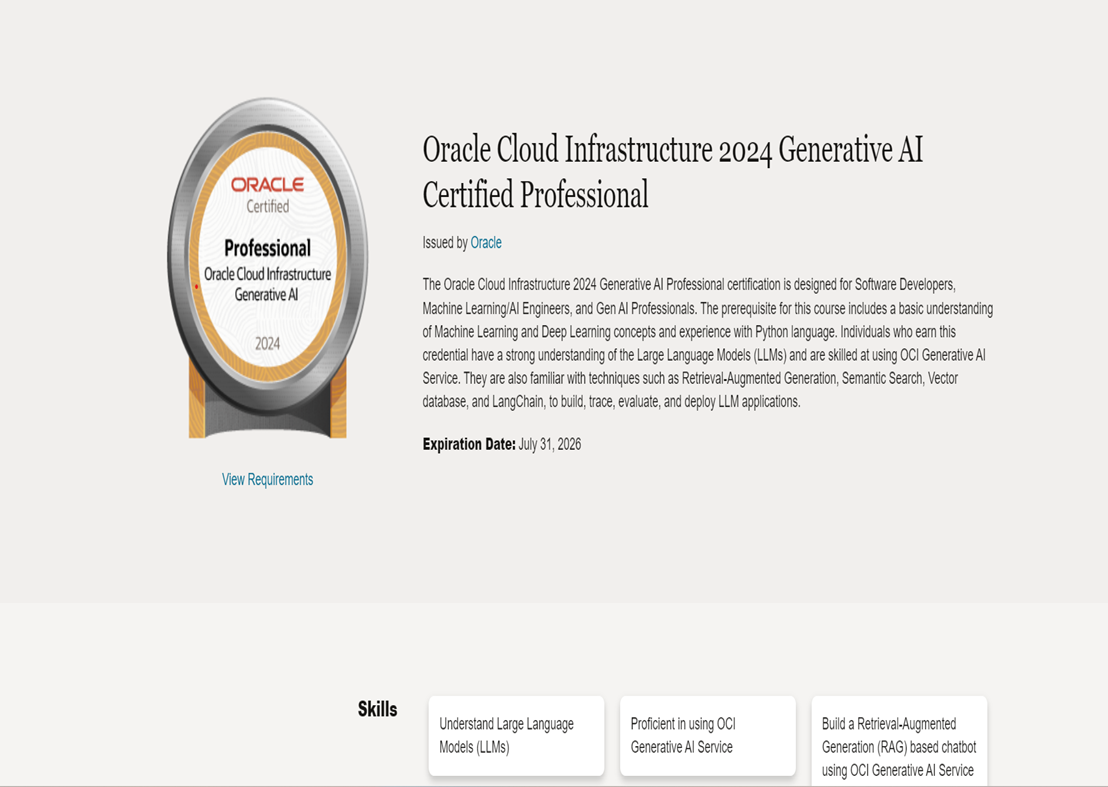 Oracle Cloud Infrastructure 2024 Generative AI Professional